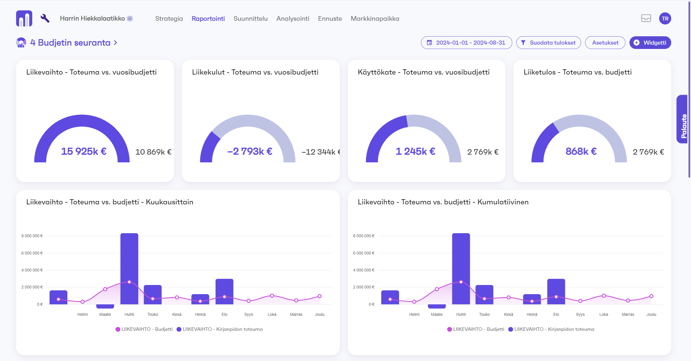 StatBun on pilvipohjainen ratkaisu, joka yhdistää kaikki keskeiset taloustiedot yhdeksi helposti hallittavaksi kokonaisuudeksi. Se kerää ja analysoi yrityksesi taloustietoja, kuten tulot, menot, budjetit ja kassavirrat, tarjoten selkeitä raportteja ja visuaalisia esityksiä liiketoimintasi kehityksestä.